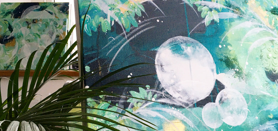 Exploring our connection to nature and a desire to protect life on Earth through abstract rainforest paintings filled with holistic greens and soulful blues