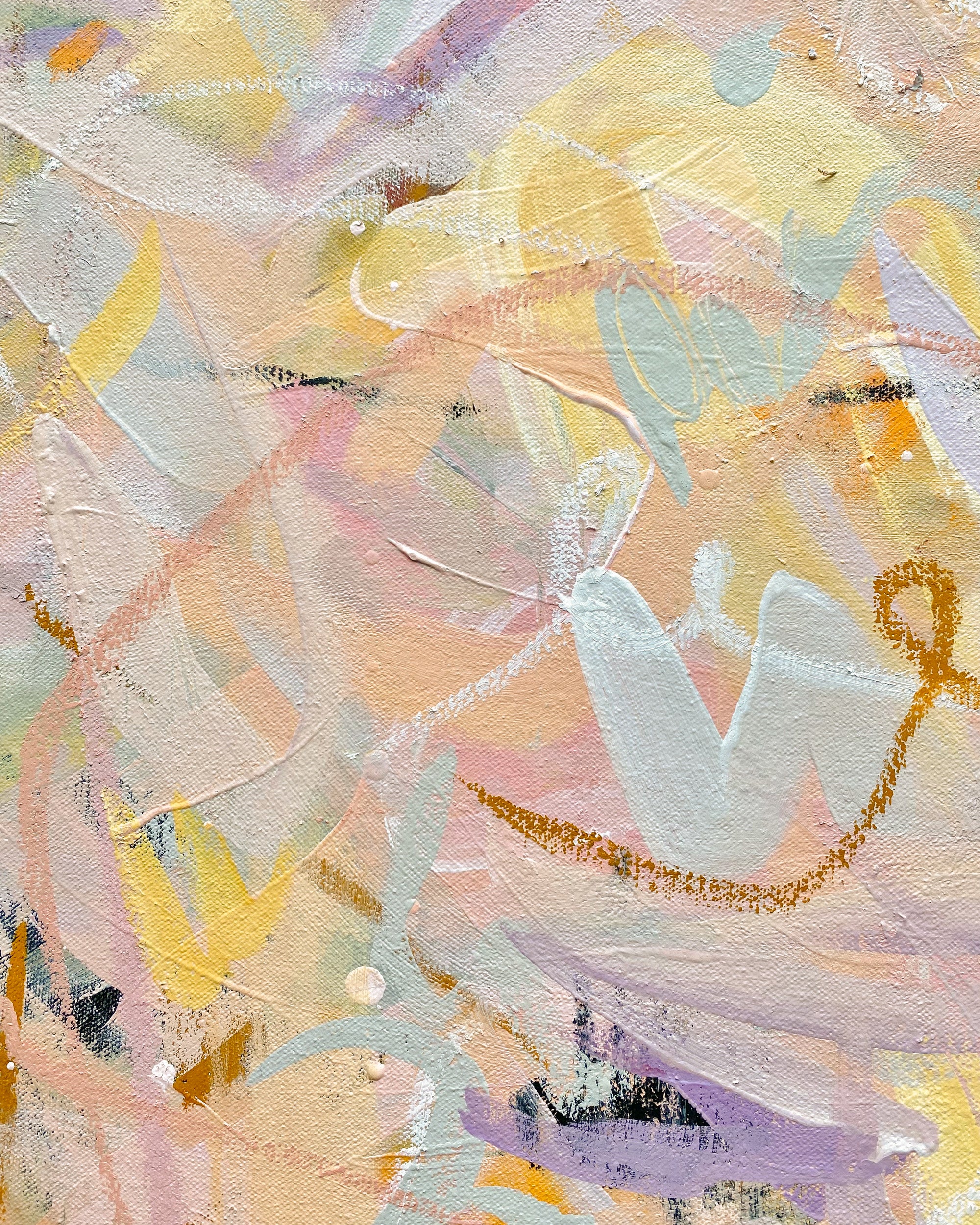 This uplifting original artwork blends blush pink, warm ochre and earthy autumn tones with a touch of mauve in soft, textured layers. With looping lines and heart-inspired details, it brings a serene, uplifting feel to living rooms, bedrooms, and wellness spaces. A perfect piece of modern abstract art for cosy homes.