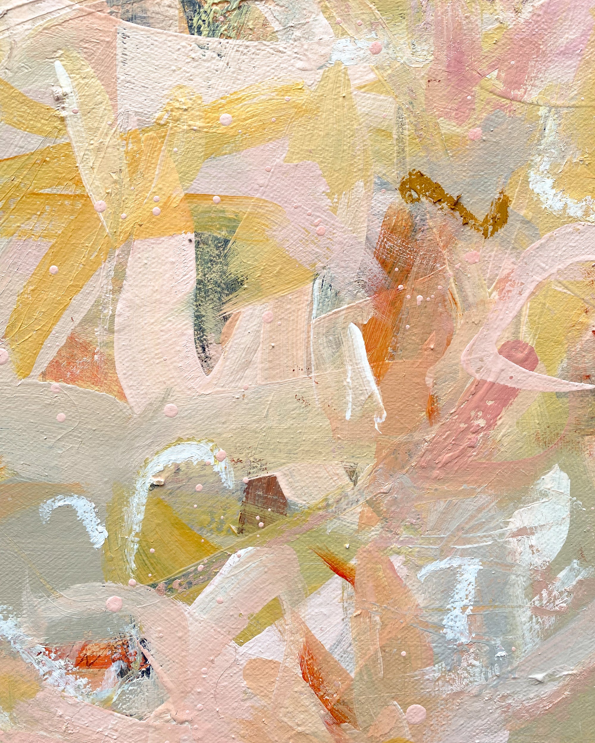 This original abstract painting features blush pinks, warm ochre tones and earthy seasonal hues. Layered textures, leaping lines and subtle heart motifs create a calming, love-inspired artwork perfect for modern interiors. A soft, expressive piece that brings warmth, depth and contemporary style to any room.